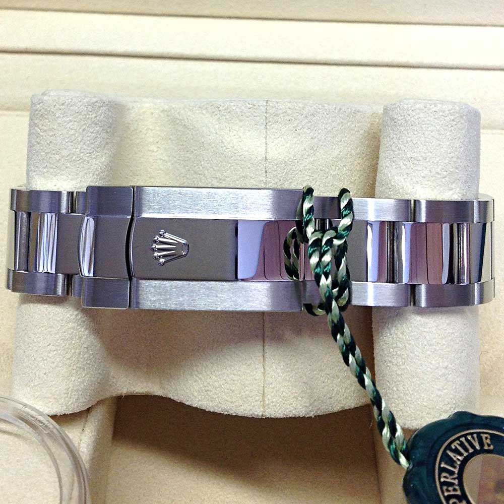 – Bracciale in acciaio 904 AISI L fresato dal pieno come in originale.