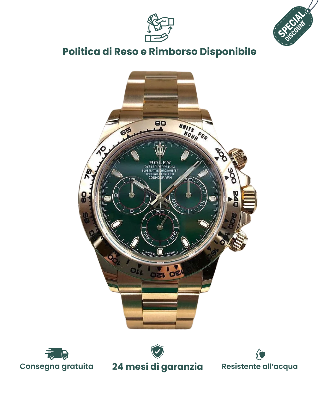 - Impermeabilità fino a 100 metri, perfetto per ogni occasione.