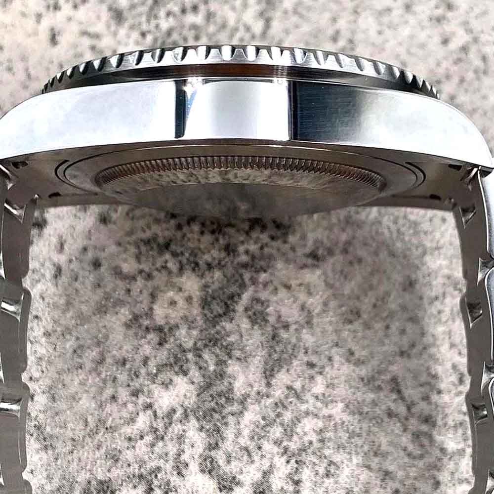 – Cassa fresata dal pieno con i più moderni strumenti dell’ alta orologeria in acciaio Inox 904 AISI L, realizzata su base originale con strumenti di disegno al CAD. Le casse sono tutte timbrate e serigrafie come in originale: numero di matricola da un lato tra le ansette e numero di referenza con dicitura: rolex original design dall’ altro lato tra le ansette.