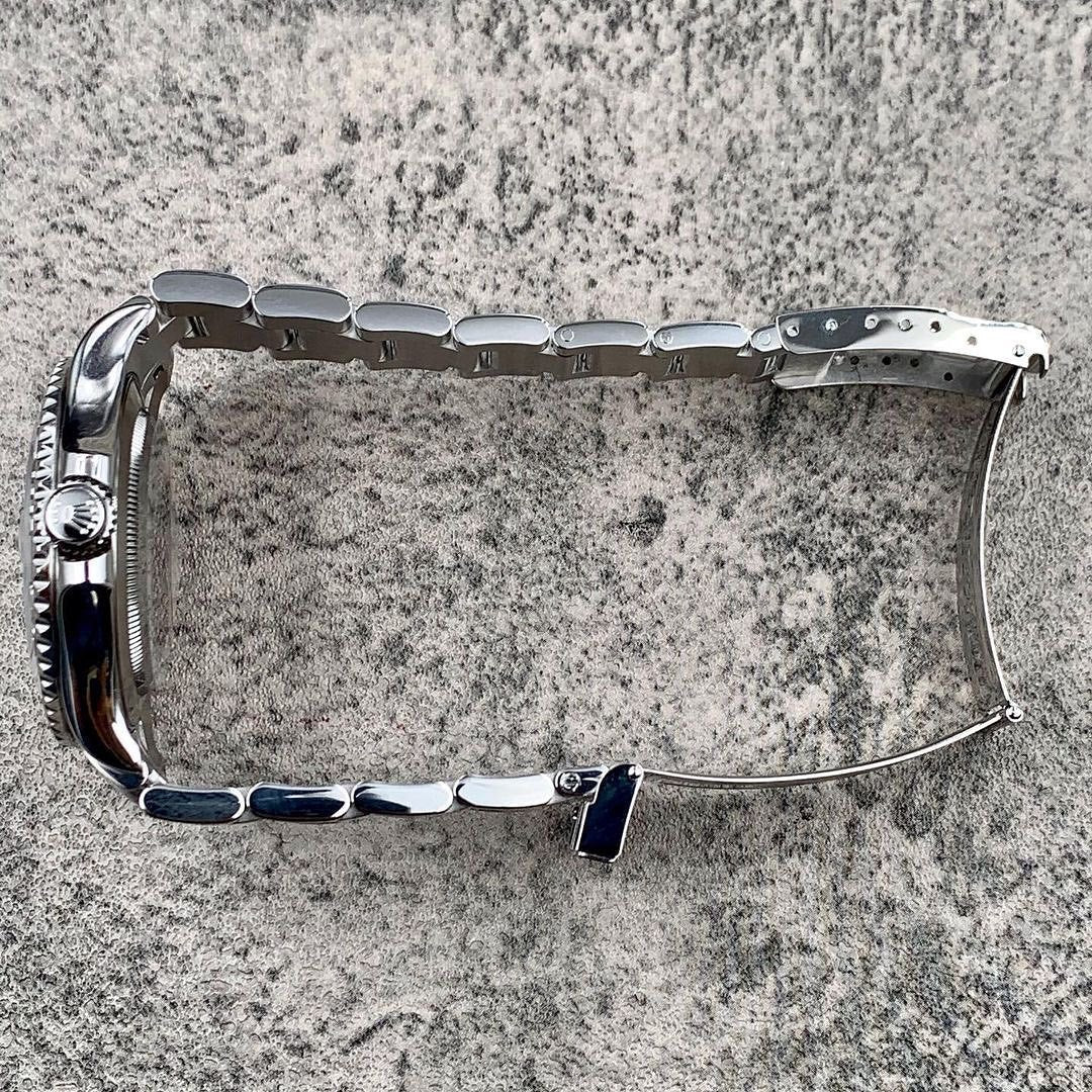 - Cassa acciaio Inox pieno 904 AISI L fresato dal pieno, realizzata su base originale con strumenti di disegno al CAD. Le casse sono tutte timbrate e serigrafie come in originale: numero di matricola da un lato tra le ansette e numero di referenza