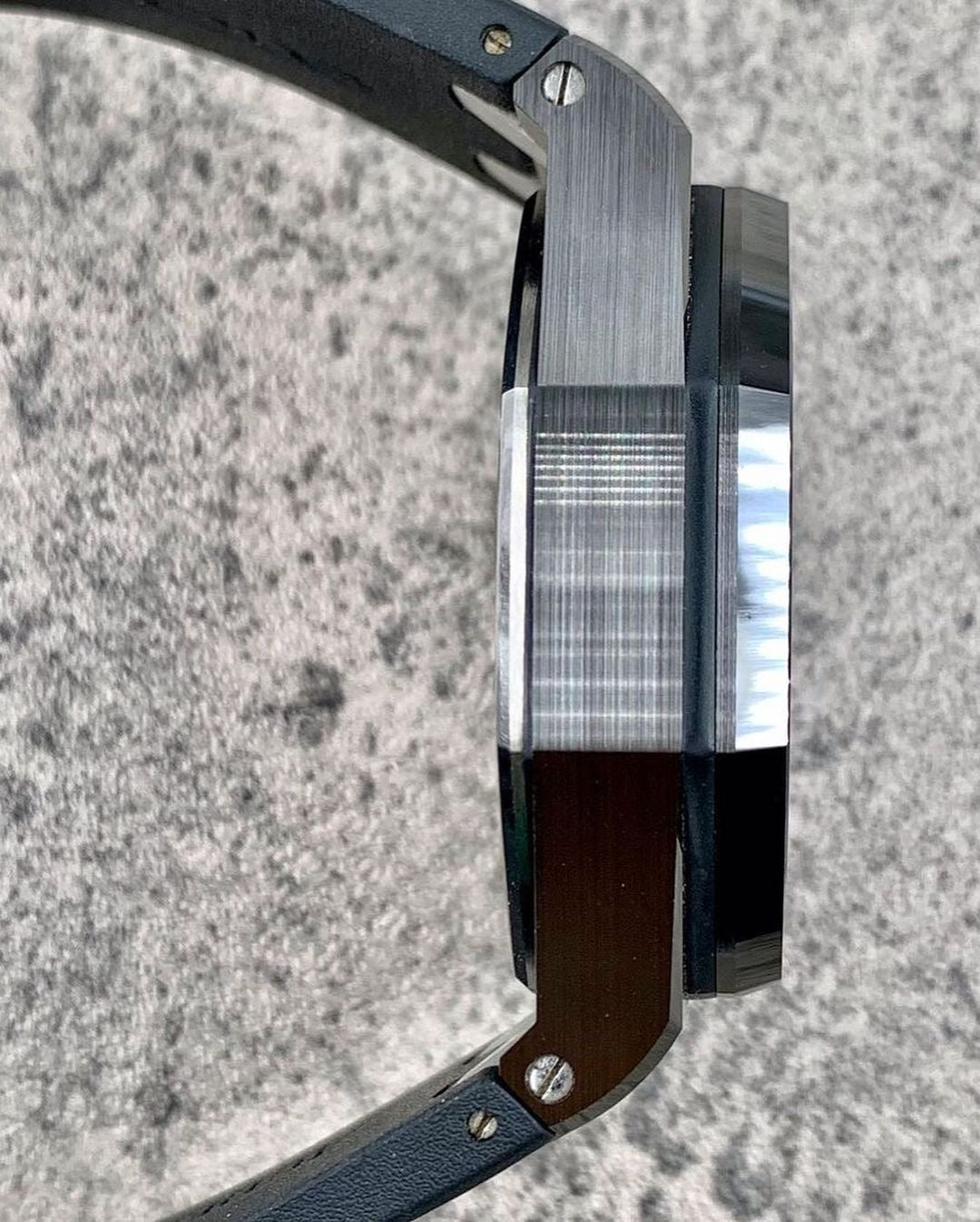 • Cassa acciaio Inox pieno 904 AISI L fresato dal pieno, realizzata su base originale con strumenti di disegno al CAD. Le casse sono tutte timbrate e serigrafie come in originale: numero di matricola da un lato tra le ansette e numero di referenza