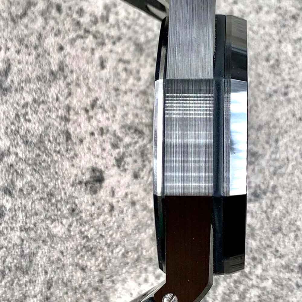 – Ghiera girevole in acciaio 904 AISI L fresata dal pieno come in originale.
