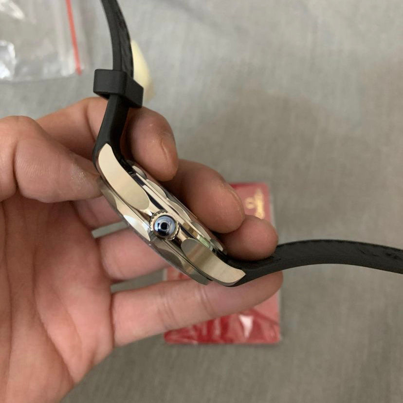 - Cassa acciaio Inox pieno 904 AISI L fresato dal pieno, realizzata su base originale con strumenti di disegno al CAD. Le casse sono tutte timbrate e serigrafie come in originale: numero di matricola da un lato tra le ansette e numero di referenza